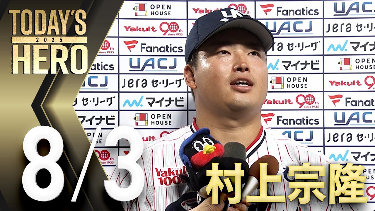 【ヒーローインタビュー】村上宗隆選手、先制打&2ランHR含む4安打3打点の大活躍! 8月3日 東京ヤクルトスワローズvs阪神タイガース(神宮球場)