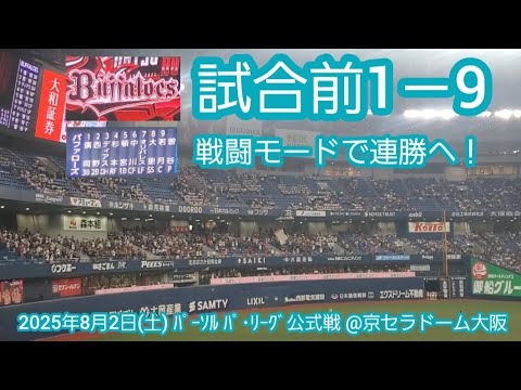 20250802 戦闘モード夏の陣!オリックス・バファローズの試合前1-9応援歌メドレー 鳴り物・声出し応援1-9@京セラドーム大阪・レフト外野下段 Bs夏の陣2025