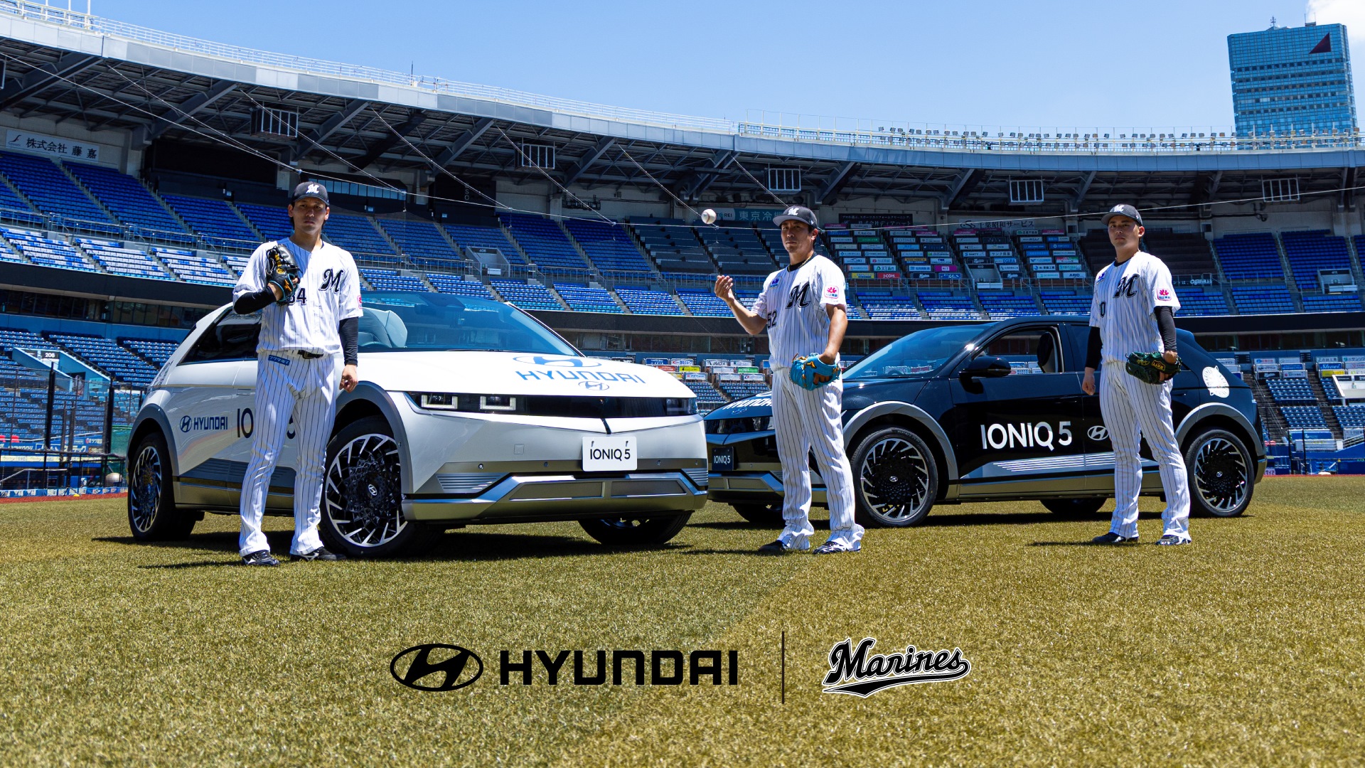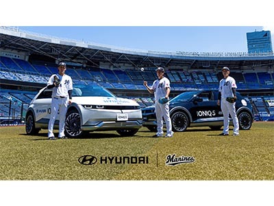 千葉ロッテマリーンズはHyundai Mobility Japan株式会社とパートナーシップ契約を締結。Hyundai(ヒョンデ)のフラッグシップEV(電気自動車)『IONIQ 5(アイオニック ファイブ)』2台の提供を受け、明日5日(火)ソフトバンク戦(ZOZOマリンスタジアム、18時00分試合開始)より、EVリリーフカーとして運用を開始する。
