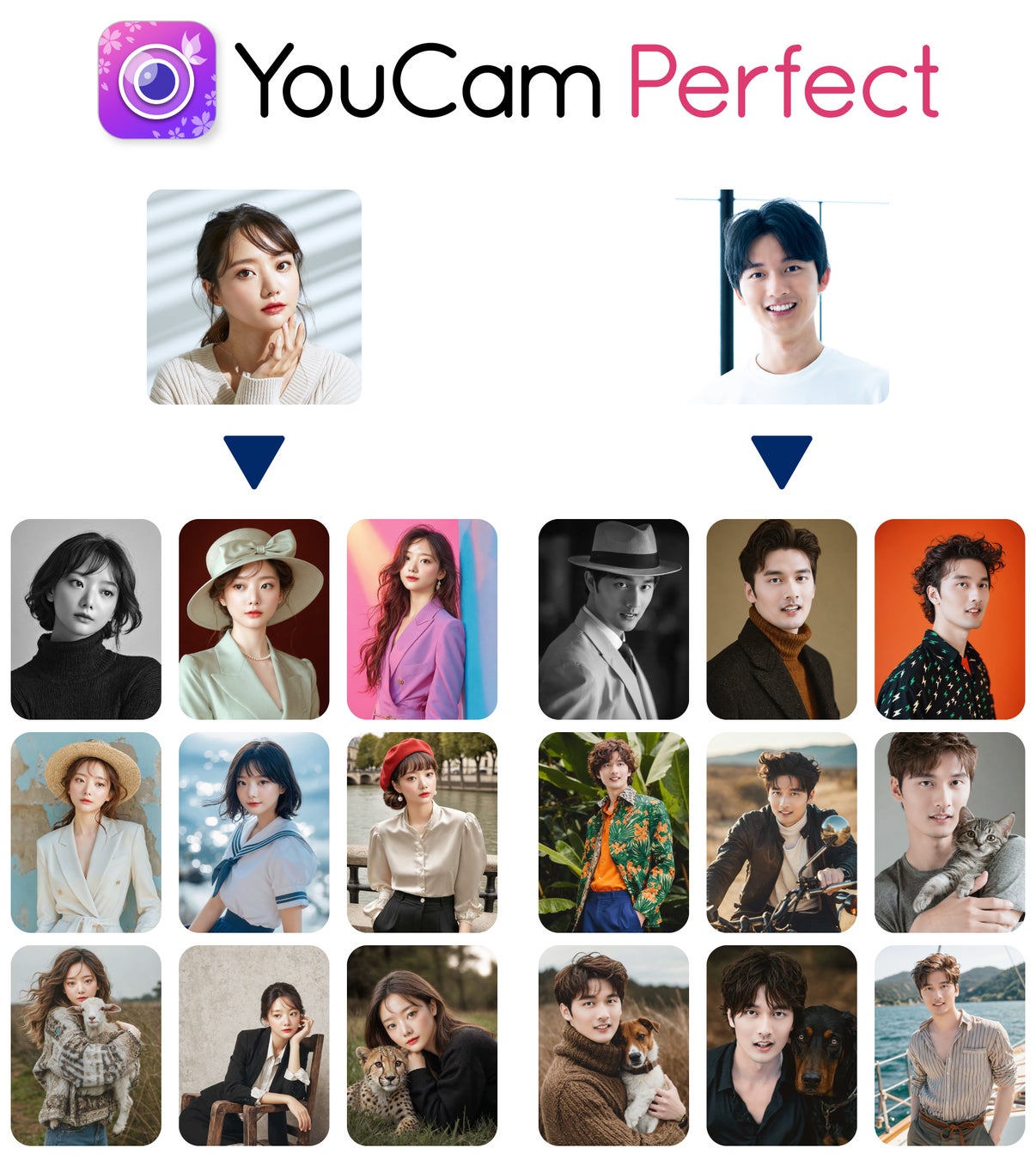 さらに、同じAIエンジンを使用した写真加工サービスは、『YouCam Perfect』アプリ内の『AIスタジオ』機能でも体験できます。ユーザーは写真を1枚アップロードし、スタイルを選択するだけで簡単にAI生成画像を作成できます。
