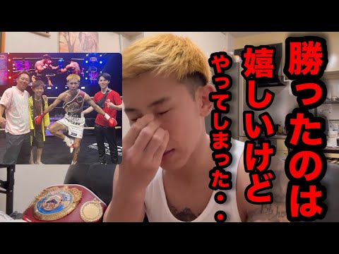 はい、こんばんは。長じです。え、タイズ の試合応援ありがとうございました。え、 26が試合で、で、試合後すぐに動画 撮ろうかなとも思ったんですけど、えー、 ちょっとやっぱ10ラウンド戦ったら ちょっと疲れもあって、え、ちょっと バタバタしたりなんかもして、え、タでは 動画撮れずで、え、今日が28ですね。え 、大阪帰ってきました。はい。あの、そう だな。まあ、ダメージはそんなにうん、 ないかな。ちょこちょこもらったっすけど 、そんなにまともにもらったパンチは なかったんで。うん。ま、別に特に顔も 傷なく終わることができましたが、え、 実は、え、ちょっと 試合の本当直前に、えー、その次の試合の プランみたいなのを、あの、話を、う、 頂いてて、ま、こ、ま、正式ってとこじゃ ないよ。だけど、ま、こんなんがあるよ みたいな。で、そのこんなんがあるような 試合が、あの、僕のこう、ボクシング人生 において、え、めちゃくちゃ本当今までで 1番あの、なんだろう、心を踊るというか 、ワクワクするような、え、対戦相手で おっしゃとうん。だからこの試合は、ま、 もちろん勝たなきゃいけないし、負けたら その話もなくなっちゃうんで、勝たなきゃ いけないし、あの、でもそれも勝たなきゃ いけないプラス、え、絶対怪我しちゃいけ ないなっていう、え、試合だったんです けども、えー、最後左アッパー打った時か な、あの、 頭を殴っちゃって、それで、えー、左手を 、え、負傷してしまいました。うん。 ちょっとこの怪我がね、え、どんだけ 長引くかちょっとわかんないような状態な んですけど、あの、まずはちょっと、えー 、安静にしなきゃいけないっていうことで 、うん。本当そこだけはもうめちゃくちゃ 残念。勝って嬉しい。ま、特にこんなね、 あの、試合前にうん。まあまあ色々あった から、あの今回勝ったっていうのは嬉しい ことなんだけど、怪我してその試合があー 伸びたりした場合すごいあの残念だなって いう。え、だ、ま、嬉しさ半分、ちょっと 怪我してしまった自分に、え、腹立たしさ 半分っていう感じなんですけども、あ、 本当にあの、 今回、えー、ついてくれたスポンサーさん とか、あの、試合の話を、え、くれた、え 、プロモーターとか本当にあの、感謝して ます。ありがとうございます。はい。あの 、 そうなね、ま、試合 はうん。ま、結構自分の思い通りに進めた かな。うん。まずもらわずにこっちは当て まくるっていううん。作戦だったんです けど、ま、最近本当にあの、なんて言うん です。この年にしてカウンターのコツを 掴んだ今更。うん。っていう感じで、ま、 前回のナハポの時の試合もそうですけど、 同じような感じでスイッチして、もう YouTube上がってんのかな、僕の 試合。ま、調べたら多分出てくれると思う んですけど、あの、本当相手はすごいタフ なファイターで、なんかもっと余裕で貸し たかったんだけどね、本当は。うん。5 ラウンド以内ぐらいに倒したかったんだ けど、えー、なかなかタフで、え、 スタミナもあって、頭が硬かったな。うん 。右も結構殴って、ま、ちょっとこう打っ ていうか。うん。右も痛めてる。ま、右は まあ、ま、ギリ打てるけど。うん。そんな 感じかな。うん。ま、何よりね、ま、 ちょっと怪我なく終わりたかった時のため に。うん。っていう感じですね。うん。 あとは、まあ、今回試合に同行してくれ たっちゃん、うん、うちの息子なんだけど 、え、中学2年生でね、あの、入場の時歌 まで歌ってくれて、ほんで、え、セコンド 、ま、うち僕の見てくれてるみつでね、 教えてくれてるトレーナーが、えー、来て くれたんですけど、え、たっちゃんが 椅子出しとかも歌った後にね、セコンド、 サブセコンドついて椅子出しとかもして くれて、本と、あと表能を冷やしたいとか 本当大活躍でした。うん。ちょっとね、 うん。ありがとうってあの言いたいと思い ます。お、あとまあちゃんね、あの下の子 娘なんだけどうん。まあちゃんもその ライブ配信を見てくれたみたいで、あの ね、パパパってこうテレビ見て言ってくれ たみたいなんですけど。うん。やっぱこう ね、まあまあ別に東京、大阪、ま、2時間 の距離だから別にあの、会いには行けるん だけど、ま、こうやってね、なんて言うん ですかね、あの、僕の、ま、言ったら 仕事場なわけじゃないですか。の上がね、 そういう僕のこのあー、 仕事を頑張ってる姿をあのテレビで うん。僕はこう、ま、会場にはね、 こね、来てくれるのかちょっとわかんない けど。うん。会場には来ないかな。多分来 てくんないとは思うんだけど。これテレビ でもね、あのミス、あ、パパ頑張ってる なっていう風にうん。見てくれたら嬉しい しうん。それもなんかもうあの頑張ろうっ ていううん。僕のえ、力にもなるんですし ね。うん。娘が見てくれてる前でね、あの 変な試合できないなみたいなうん。気持ち もあ、あるし。う