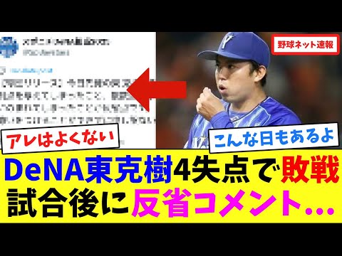 DeNA東克樹、4失点で敗戦…試合後に反省コメント【ネット反応集】