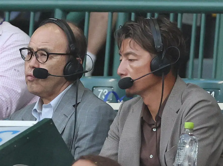 テレビ解説を務める(左から)岡田彰布顧問、鳥谷敬氏