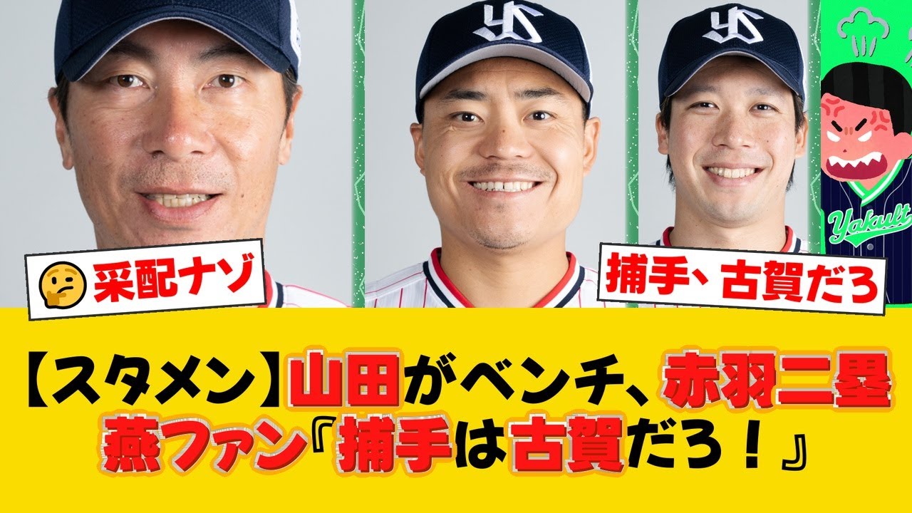 3年ぶりの8連勝で9連勝を目指すヤクルト。しかし、31日のDeNA戦スタメンでは山田哲人がベンチスタートとなり、捕手には中村悠平が起用されました。この采配に対し、ファンからは「なぜ好調の古賀を外すのか」「連勝中にスタメンをいじるな」といった疑問や批判の声が多く上がっています。一方で、スタメン抜擢された澤井廉や赤羽由紘への期待の声も。果たして高津監督の采配は吉と出るのでしょうか。ファンの反応をまとめました。