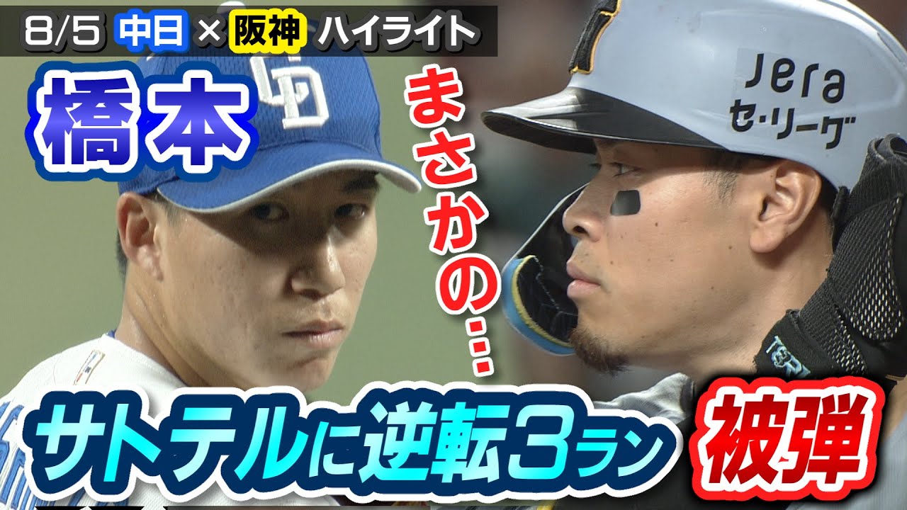 橋本まさかの・・・サトテルに逆転3ラン被弾【8/5 中日×阪神 ハイライト】