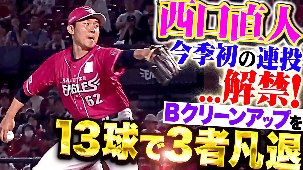 東北楽天は逆転直後の8回に西口直人をマウンドに送る。トミー・ジョン手術から復帰後初めての連投となった西口だが、不安を感じさせない投球で3者凡退に封じ、リードを守った!!