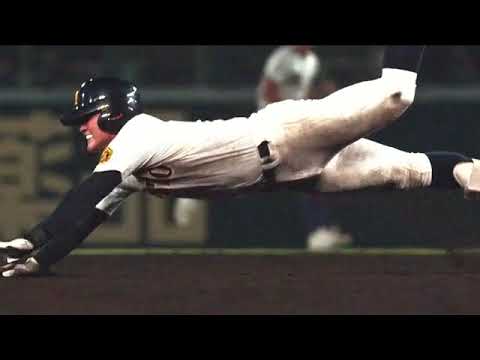 2アウトランナーなして今日3眼だ。4番 バッター稲山相馬 前。そして記録相たレフト戦。弾早い。 井山は2塁を狙う。ボールがセカンド ベースで持ってくる。頭から滑り込んで いきました。今日なんと4打数4 アダユニフォームが破れながらも頭から 突っ込んでいきました。 すごいですね。はい。 そしてこの稲山のね、この動き 1つ1 つのこのパワーにユニフォームの方が耐えれませんでした。あ、 そうですね。 あの野手感を非常に詰めているという風に紹介したんですが、その無人のレフト戦でした。 そうですね。その通りのとこに飛んできましたよね。 はい。 ま、普通でしたらレフト前ヒットっていうような当たりかと思うんですけどね。 はい。そしてこのヘッドスライディング スローでもご覧いただきましょう。この大迫力です。 大きな体を手からセカンドベースをぎ取りました。どうでしょうか?ま、ユニフォームはね、基本的には 1 着しかね、こう背番号付きのはないはずですけれども。 そうですね。誰かの借りたんですかね。 あ、そして背番号18 番のユニフォームをして最登場です。 1 年生の吉本優勢からユニフォームを借りたようです。はい。 なるほど。 お待たせいたします。 ヒット打ってるバッターに対して大事打ですからね。 よほどあの信頼があるバッターなんでしょうね。背番号 12番です。2年生 港前インコース変化球かっ三振りました。今日初めて長尾の表情が笑顔になりました。 大ピンチでした。オフさん一言お願いします。 いや、なかなかね、満塁であのインコースにボール投げづらいんですよ。デッドボールありますからね。