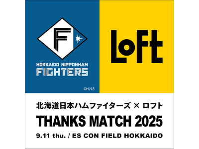 株式会社ロフト(東京都渋谷区/代表取締役社長 安藤公基)は、2025 年9月11日(木)に「北海道日本ハムファイターズ×ロフトTHANKS MATCH 2025」をエスコンフィールドHOKKAIDO(北海道北広島市)にて開催します。ロフトは、北海道日本ハムファイターズとの「THANKS MATCH 2025」開催を記念し、日頃の感謝の気持ちを込めて、北海道内の6店舗限定(モユク札幌ロフト・アリオ札幌ロフト・新さっぽろロフト・旭川ロフト・函館ロフト・帯広ロフト)で、9月11日(木)の「北海道日本ハムファイターズ×ロフトTHANKS MATCH 2025」の観戦チケットが当たるお買上げキャンペーンを8月9日(土)より実施いたします。