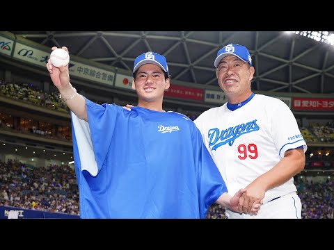 放送席、放送席、そしてバンテリンドームにお集まりのドラゴンズパンの皆様お待たせいたしました。今日のヒーローはプロ初勝利をあげました金丸夢と投です。おめでとうございます。 ありがとうございます。 いや、すごい完成ですよ。 このお立に立った今の気分かですか?いや 、もっと早く、え、上がりたかったんです けど、え、ま、やっと今日勝つことができ て良かったです。 チームのみんなも、そしてドラゴンズ ファンの皆さんも本当にこの時を待ってい ました。 いや、前回の登板ではちょっとこうベンチ で悔し涙を流してるようにも見えたんです が、どうだったんでしょうか?いや、もう この前は完全に、え、自分のせいで、え、 自分のせい だったんですけど、え、 ま、でも今日絶対にやり返すという強い 気持ちを持って、え、マンドに上りました 。 今日は前回もひっくり返してくれた打線の皆さんが先生点取ってくれました。どんな気分でした? いや、もう先生点取ってくれて本当に、え、自分自身も楽に投げれましたし、え、ま、序盤はバタバタしましたけど、え、要所でしっかりと抑えることができたのでそこは良かったです。 主有行く阪神との対戦は初めてで点を取っ ても襲いかかってくる阪神打線の迫力 いかがでした?いや、もう本当にすごい ですし、え、応援も本当に圧を感じたので 、え、ま、なんとか、え、 抑えれて良かったです。 そして 5回からは相手を0点に抑え、6回からは 6783イニング。3者凡体ですよ。 素晴らしいピッチングでした。はい。えっ と、もっと最初から、え、やっとければ 良かったんですけど、え、はい。次はも、 え、初回から序盤からしっかり抑えれる ようにやっていきたいです。 途中からは随分と乗ってきたように見えたんですが、どうでした? いや、もうそこが自分の持ち味でもあるので、え、ま、疲れてきてもこう 9 位の落ちないような、え、投球っていうのが、え、これからもできるように頑張ります。 途中監督とも話しているのが見えました。 あるいは6回で降りるのかな、あるいは 7 回で降りるのかなと見えたんですけど、あの辺りどうだったんですか? え、ま、序盤がこうバタバタしてたので、ま、いつこう変えてやろうかっていうそワそわしてるって言ってたので、え、ま、そこをなんとかはい。後半まで投げることができたので良かったです。自分でもやっぱり投げたいということ言ったんですか? はい。 言いました。ここ 2試合 8回に逆転されてました。ちょっと間の 8回みたいになってたんですが 8 回抑えましたね。はい。え、もう押えないと、え、これからはダメだと思うので、え、はい。こういったピッチングができるように、え、次もしっかりと準備していきます。 さあ、 初勝利の喜び、ま、記念のボールもあり ますよね。今日もご両親が見に来て くださってます。 直接呼びかけてくださいよ。 え、ま、ずっと試合を見に来てくれてたの で、え、なかなかいい姿を見せれなくて 悔しかったんですけど、え、ま、10度目 の正直ということで、え、勝つことができ たので、え、いい姿を見せれたんじゃない かなと思います。 記念のボールもプレゼントできますね。 記念のボールもプレゼントできますね。 はい。そうですね。 じゃあこの後ここまでね、待ってくださっ ていた、熱勝勝利を待ってくださっていた ファンの皆さんにメッセージをお願いし ます。はい。えっと、ま、今まで期待に 答えられなかったのでこれからはもっと 期待に答えれるように、え、頑張りたいと 思いますし、え、本当に声援がとても力に なって今日もいいピッチングができたので 、え、今後とも応援よろしくお願いします 。ありがとうございました。 今日のヒーロー、見事にプロ勝利上げました金丸夢投手でした。おめでとうございました。 ありがとうございました。 放送席放送席勝利監督インタビューです。中日ラゴンズ井上和ず監督です。金丸夢投手 10 試合目の挑戦にしてプロ初勝利を予定にしました。 ちょっとね、時間がかかりすぎましたけど ね。おい、どれくらいかかったんだって今 話してたんですけども、約3ヶ月ですか? 約ですよね。ま、あの、そのたびに登板 するたびに、あの、夢のお父さんお母さん が、え、あちらの関西の方からね、いつも を運んで、え、東北で試合あった時でも、 もう常にどこでもあの夢の応援にっていう 形で来てたんで、もう今日勝てなかったら もう父ちゃんかちゃん来るなって言えよ なんて話もしてましたけども、あの、相手 がね、本当に、え、周囲を走っている阪神 タイガです。ま、ある意味、え、シーズン 途中ではありますけども、タイトル ホルダーがね、たくさんいるチームに対し てあの勝利を上げたっていうことは彼に とってもすごくプロ野球人生 の中でね、第一歩い形で、え、いいチーム から、え、上げれたっていうのはすごく 良かったかなと思います。僕もほっとして ます。今後にも繋がって