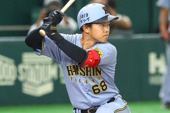 21歳が放った弾道に、X(旧ツイッター)では「プロ初ホームランおめでとう」「中村紀洋元選手の様なスイング」「飛距離えぐい」「完璧すぎて惚れました」「阪神タイガースの未来は明るい」「プロ初ホームランの飛距離じゃないw」と歓喜の声があがっていた。