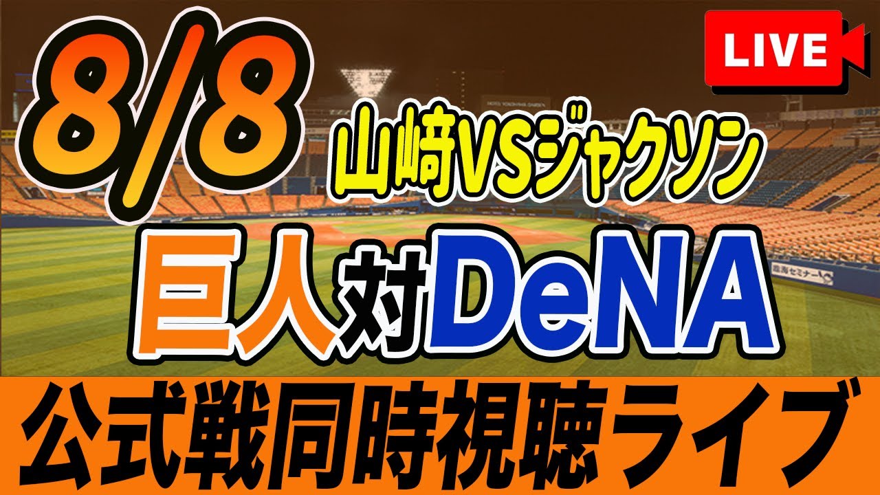 【巨人/同時視聴】8/8巨人対横浜DeNAベイスターズ17回戦を観戦しながら雑談しようライブ配信 予告先発:G山﨑伊織 Deジャクソン 読売ジャイアンツ プロ野球観戦ライブ