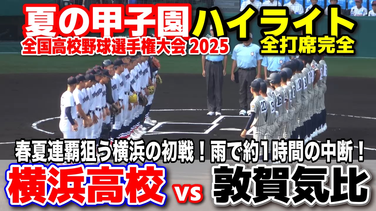 【高校野球 甲子園】 横浜 vs 敦賀気比 春夏連覇狙う横浜の初戦!雨で約1時間の中断! 【全国高等学校野球選手権大会 1回戦 全打席ハイライト】 横浜高校 2025甲子園 8.8