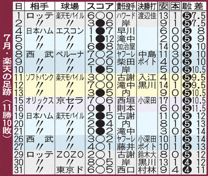 7月は1つとはいえ、勝ち越せたのはプラスです。特にオールスター明け、西武、ロッテに5連勝しました。チーム状況が苦しい相手に対し取りこぼさなかったのは、8月に希望が持てる終わり方でした。