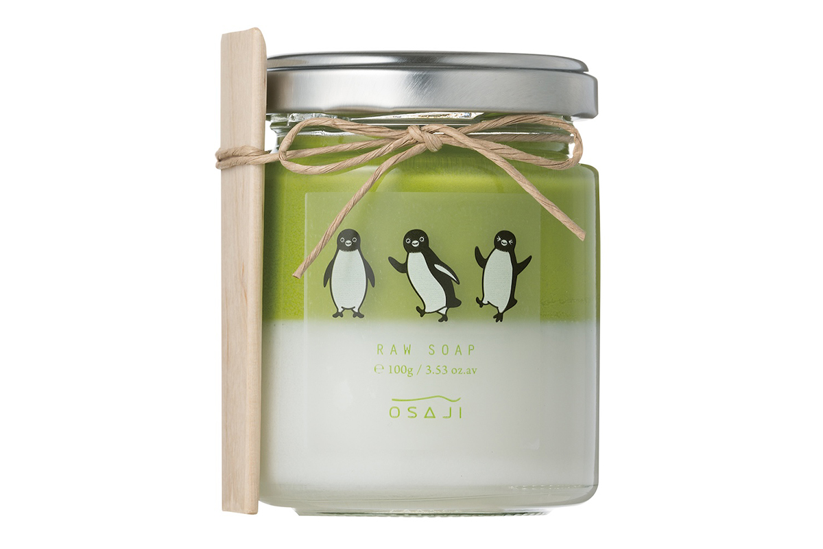 ジャム瓶に入ったグランスタ東京店限定の”オサジ ローソープ トーキョー”(100g、2420円)は、Suicaのペンギンをラベルにデザインした半練り状の洗顔石けんで、石けん本来のさっぱり感としっとり感の両立を実現した洗い上がりが特徴だ。やわらかい半練り状の2層式保湿石けんがもっちりとした泡立ちで肌を包み込み、潤いを残しながらすっきりと洗い上げる。