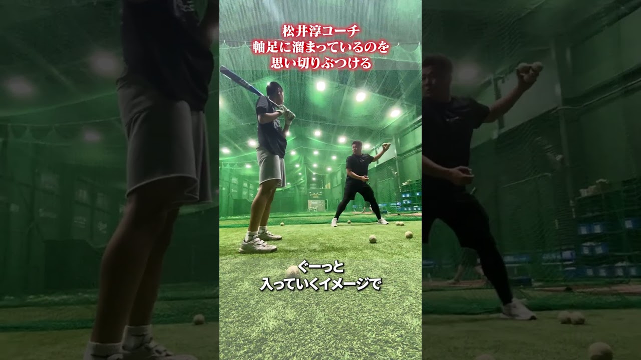 軸足に溜まっているのを思い切りぶつける🔥 #松井淳 #野球
