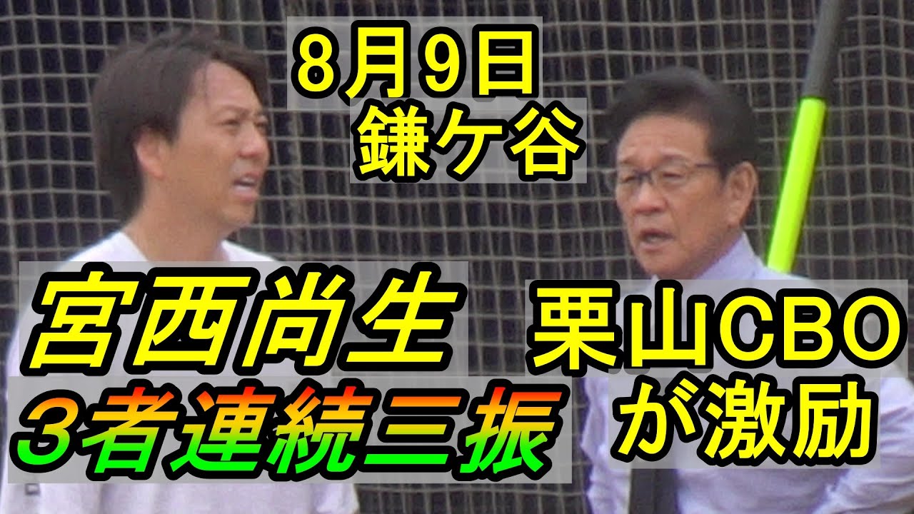 宮西尚生、金子コーチのアドバイスで微調整→3者連続空振り三振!栗山英樹CBOが激励、日本ハム鎌ケ谷2025.8.9