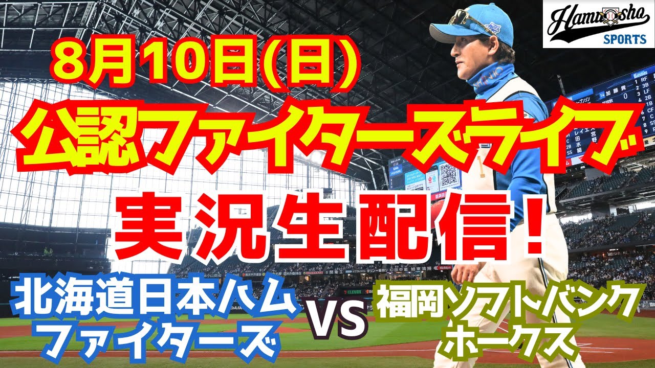 日ハム 日本ハムファイターズ 2025年8月10日 北海道日本ハムファイターズ対福岡ソフトバンクホークス戦を実況生配信でお送りします。