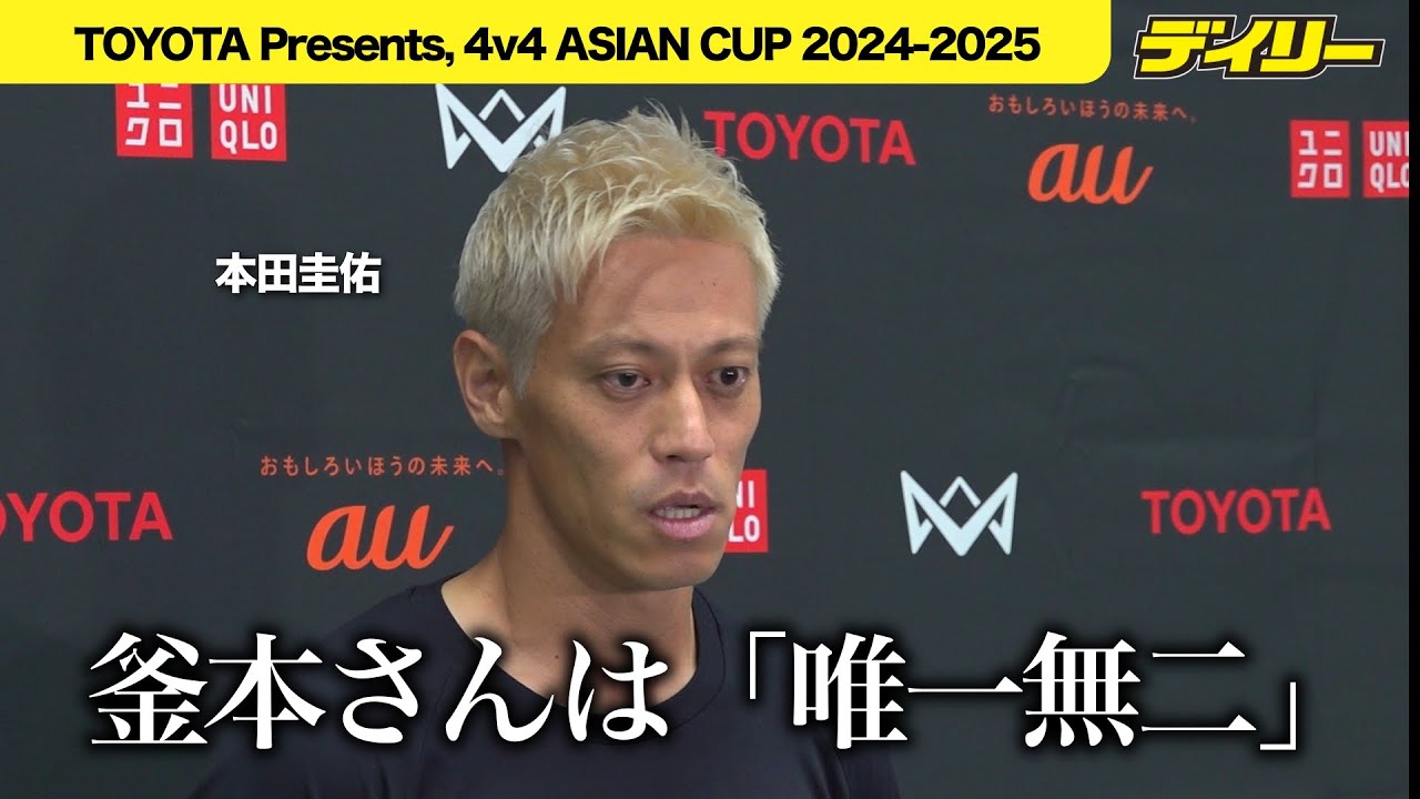 サッカーの本田圭佑が10日、自身がてがける小学生向け大会「4v4」の「ASIAN CUP 2024-25」に出席した。大会後に、サッカー日本代表のレジェンド・釜本邦茂さんが亡くなったことについて質問を受け、思い出を語った。