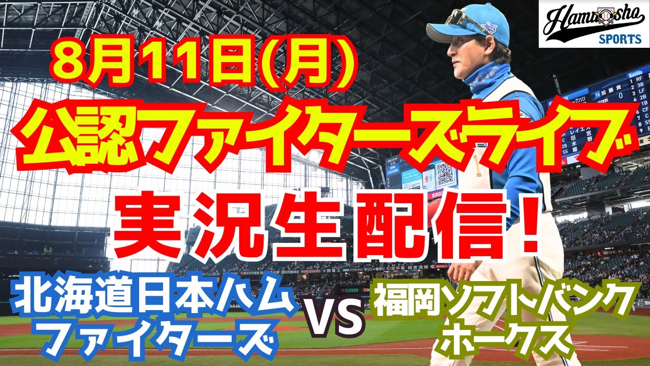 日ハム 日本ハムファイターズ 2025年8月11日 北海道日本ハムファイターズ対福岡ソフトバンクホークス戦を実況生配信でお送りします。