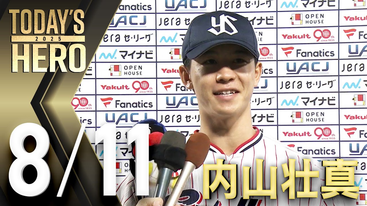 【ヒーローインタビュー】内山壮真選手、ホームラン含む3安打3打点! 8月11日 東京ヤクルトスワローズvs横浜DeNAベイスターズ(神宮球場)