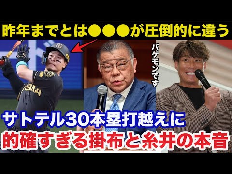 打者としての特別なステージに上がった。 真夏のサトテルの回進劇は止まらない。 8月7 日広いバンテリンドームで行われた中日戦 2対後とリードされて迎えた 4 回先頭の佐藤明はカウントワツからゴールデンルーキー金丸夢との [音楽] 4 球目甘く入ったスライダーを振り抜いた。ライナーの打球は勢いを衰えることまで届く一発となった。 [音楽] さらに翌日の8月8日、舞台を強に移し、 両軍無得点で迎えた4回裏、佐藤は カウント3ボール1ストライクから ヤクルト高なが投じた5球目の甘めに入っ たフォークをドンピ車のタイミングで捉え た。打球はドームの天井を伝うように放物 線を描きライトスタンド中段に着弾。 2000連続の豪快な一発に虎ラ塔で 埋まったスタンドは大感に包まれた。 佐藤は試合後、 自分の中で30本というのは1 つの目標だったので嬉しいです とコメント。この 30号は両でぶっちぎりの 1番乗りの大越超越え。球団抜きでは 1985 年の全阪神監督の岡田明信タイガース掛正幸となる。 そこでこの異次元のサトテルの覚醒に阪神レジェンドの放ったある言葉とはなぜ今年サトテルは覚醒したのか? 長い阪神タイガースの歴史でも間違いなく快解快去だ。球団の生え抜きでは日本 1となった1985年の駆けの40 本岡田市の35本以来40年ぶりとなる 30号到達。しかも1992年から ラッキーゾーンが撤廃され、2000年に 現日本ハム監督の新庄強氏が28本。 2005年に全阪神打撃高知の今岡誠が 29本のアーチをかけてきたが、期待の スラッカーたちでも届かなかった神の領域 でもある。飛ばないボールの時代となった 現代でライトからレフトへ強い浜風が吹く 甲子園を本拠地とする阪神。そこに風穴を 開けたのは素晴らしいの一言だ。ただ 今シーズン佐藤は八区の勢いで本塁打を 量産している一方で8月9日時点で三振数 も両リーグダトの120個まで積み上がっ ている。だが佐藤本人は気にしていない。 ホームランバッターとしての誇りがあり、 将来的にメジャーを視野に入れているから こそ三振も恐れずに受け入れている。佐藤 の言葉にもそれが伺われる。 佐藤は今シーズンのバッティングを 長打を打つにはある程度強いスイングをしなきゃいけない。そこはトレードオフと述べる佐藤の口からトレードオフ。英語のトレードオフとは何かを得ると別の何かを失う相愛入れない関係のことである。 [音楽] 佐藤は昨年の契約公開で近い将来 ポスティングシステムを利用しての大 リーグ挑戦を球団に直訴しているメジャー を意識しての言葉なのだろうか。それは8 月5日の中日戦で28号を放ったヒーロー インタビューでも買いままみれた。打った ボールはと聞かれると佐藤は4シームです 。まっすぐですと答えた日本でいう ストレートまっすぐ。特急はメジャーでは 4シームと表現されるが、日本の選手が 4 シームと発言するのはごく稀れだ。その佐藤の発言には Xでまた琢間に鋭いツっコみが入り。 悟テルもうメジャーに行くつもりやはストレートのこと 4シームって 佐藤明の4 シーム発言明らかにメジャーを意識しているとの声が上がった。 続けて佐藤はインタビューで あまり長打を打たない選手は当てに行って打率立を稼ぐのも 1 つの手だと思うけど状況によって違う時もあるけど基本的にやっぱり蝶だというのがあるので ときっ張りという三振は豪快な打撃の代償佐藤が目標として掲げるドジャースの大谷翔平も [音楽] 8月9日の時点での三振数はリーグ 2位の141 個もう割り切っているようでもある。 そこで現在ホームランダービーを独走する 絶好長の佐藤を見た阪神レジェンドたちの 見解はというとミスタータイガース掛正幸 と超人井吉尾夫が放った本音過去に30本 台のホームランを放った半神ハえ抜きの 掛け岡田レジェンドオービーの名前を聞い た瞬間は そこと比べるのは違いすぎて と謙遜が 自分の中では30というのは1 の目標でしたから と少しだけ満足げな表情を浮かべた。そして 1 打席1打席頑張ります。それだけです とに足がついたコメントを残した。そこで名前を出された掛正幸氏は今シーズンこれまでの里テルをどう見たのであろうか。まず駆けは [音楽] [音楽] 佐藤の30 号ソロは今期の成長を象徴する完璧なスイングだった と絶賛する。 そして ヤクルト高なの3 からのフォークに対して右膝をほんの少し曲げて体が前に突っ込むことなく振り抜いた。昨期より右の下半身の使い方がうまくなり右サイドの軸がぶれなくなった と技術面での佐藤の成長を述べる。 続けて駆けは 佐藤も私もそうだが右投げ左打ちの打車は軸が [音楽] 2つある という 代表的なのが一郎 と期待のヒットメーカー一郎を例に出し 右足への極端な体重移動でヒットを量産した逆にメジャー算 [音楽] 762 本塁ダのバリーボンズのように左投げ左打ちの打車は体重を左足に残して左サイドの軸だけで本類打を量産できる 佐藤のスイング自体も変化を感じる と述べる。そして 佐藤はテイクバックが小さく体に巻きつくようにバットが出てくるの