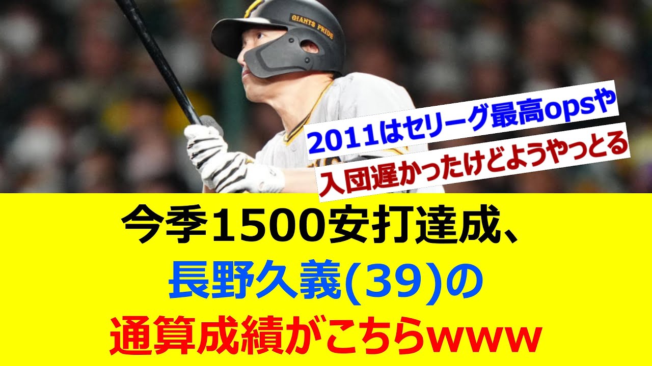 今季1500安打達成、長野久義(39)の通算成績がこちらwww【ネット反応集】