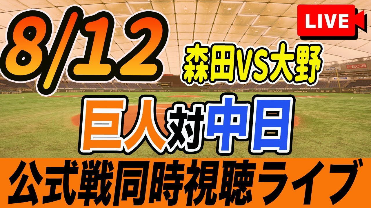 【巨人/同時視聴】8/12巨人対中日ドラゴンズ18回戦を観戦しながら雑談しようライブ配信 予告先発:G森田駿哉 D大野雄大 読売ジャイアンツ プロ野球観戦ライブ