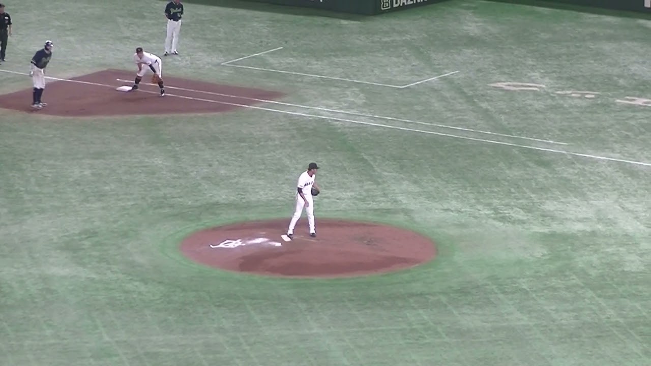 オスナをショートライナーに打ち取る堀田賢慎(2024年9月14日 読売ジャイアンツ 対 ヤクルトスワローズ)