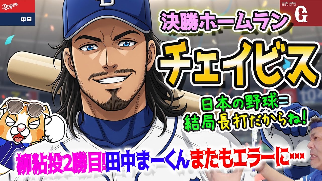 【中日ドラゴンズ】チェイビス決勝ホームラン!田中まーくん勝利目前こぼれる、週末ベイスと2G差で決戦だー祝勝会【ライブ】