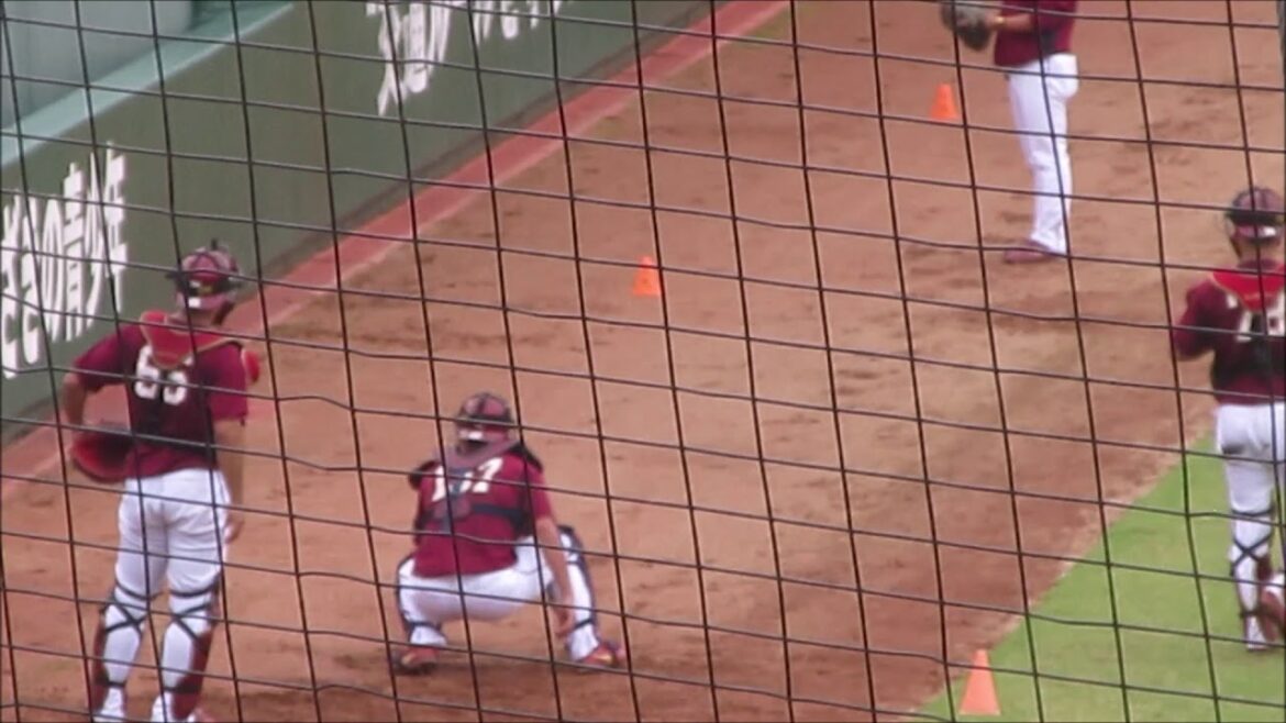水上桂・堀内謙伍・江川侑斗選手(楽天イーグルス・捕手)の練習模様