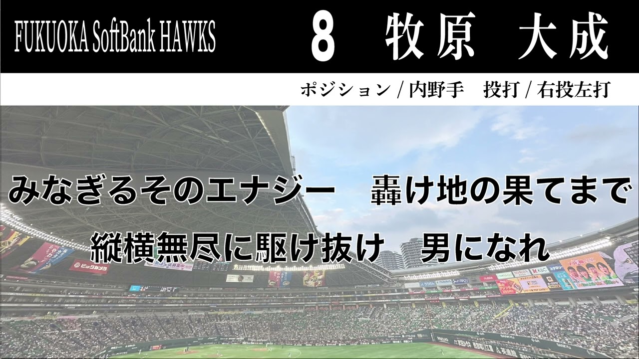 【ホークス】8牧原大成応援歌【小春六花AI、フリモメンAI】 みなるそのエナジーケの果てまで中央を無人に駆け抜け男になれなるそのエナジーどけの果てまで中央を無人に駆け抜け男にな 背番号8 牧原 大成 選手の応援歌を【Synthesizer V】 小春六花AI、フリモメンAIさんに歌ってもらいました。 #プロ野球Fukuoka SoftBank HawksHAWKSソフトバンクフリモメンホークスみずほPayPayドーム福岡小春六花応援歌牧原牧原大成福岡福岡ソフトバンクホークス福岡ドーム NPBHUB.COM | The Fanbase of Nippon Baseball & Nippon Professional Baseball