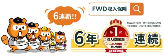 2024年11月29日発売のNEW よい保険・悪い保険2025年版(徳間書店)において、『FWD収入保障』が2018年の発売から6年連続で、ベストランキング第1位を獲得しました。