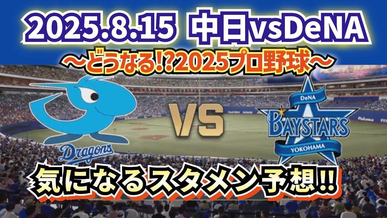 【どうなる!?2025プロ野球】2025.8.15 中日vsDeNA18回戦スタメン予想‼