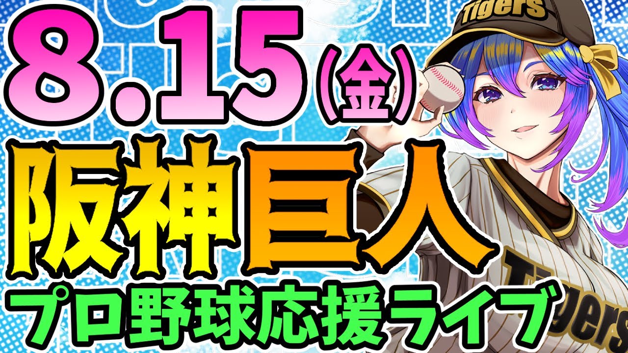 【阪神応援実況】8/15(金)阪神タイガースVS読売ジャイアンツのプロ野球同時視聴ライブ!阪神ファン、巨人ファン歓迎!!!【プロ野球速報/プロ野球ライブ/女性Vtuber】
