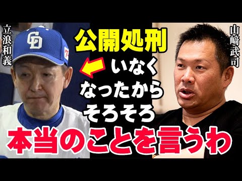 山崎たけしが語った監督時代の中日の真実 。立波和吉を1番理解していたのは ドラゴンズで一緒に戦ったこの男だった。 2024年シーズン限りで中日ドラゴンズ の監督を辞任した和吉氏。そして今立波 ドラゴンズの3年間について1人の男が 思い口を開きました。その男の名は山崎 たけし。 かつて達波市と共にドラゴンズの ユニフォームを着て戦った元チームメイト です。 なぜ山崎氏はこのタイミングで発言したの か。そして彼が知る 氏の本当の姿とは一体何だったのか? 実は山崎氏と辰波氏の関係は表向きの先輩 後輩という関係をはるかに超えた複雑な ものでした。 15年間同じユニフォームを着て戦った 2人だからこそ知る真実。チームメイトと して、そしてライバルとして見てきた竜波 市の監督としての実 連続再開という結果に終わった立波政権 その背景には誰も語ろうとしなかった深刻 な問題が隠されていました。 山崎氏だけが知る竜波監督の真実。それは 中日ドラゴンズというチームの寝深い問題 を浮き彫りにするまさに衝撃の内容でした 。 今回は山崎たし氏が語った立波並波和吉氏 への本音と誰も知らなかった監督時代の 真実に迫ります。 から失望へ展じた指定関係。 山崎市と達波市の関係は1987年に遡り ます。竜波市がドラフト1位で中日 ドラゴンズに入団した翌年、山崎氏も同じ ユニフォームを身にまとうことになりまし た。2人は15年間という長きにわって 同じチームで戦い抜きました。 達波市は花しいスタートを切り、ルーキー イヤーから2番有撃種として活躍。一方の 山崎氏は挫折を味わいながらも着実に実力 をつけていく選手でした。現役時代から 山崎氏は達波市のリーダーシップを高く 評価していました。 は年齢的に真ん中で後輩には厳しく先輩に は必要なことを伝える姿勢があったと 振り返っています。 時には嫌われることもあったし怒鳴られる こともありましたがそれでもチームの勝利 と優勝のために覚悟を持っていたと評価し ていました。 山崎氏の記憶にはプロ野球の歴史に残る 選手としてだけでなく優れたチーム リーダーとしての竜波市の姿が刻まれてい たのです。 さらに山崎氏は立波監督の指導者としての 軸について興味深い分析をしていました。 立波並は厳しい監督や高知の元で育ってき たが根本には星野さんがあると思う。 としての軸とするのは星野さんの姿で立並 はうちに秘めるタイプだが真の強さや周年 が星野さんと重なる。山崎氏は達波監督が かつての名称である星の戦一監督と共通 する勝利を求める姿勢と信念を感じてい ました。 2人とも人の上に立ち人を動かすのが うまい。言葉には影響力や説得力があり、 優勝争いなど重要な局面でチームを牽引の は立波であり星野さんだったと立波監督の リーダーシップに対する評価を述べてい ました。 こうした現役時代からの深い信頼関係が あったからこそ山崎氏は2021年の竜波 監督就任時に大きな期待を寄せていたの です。 立並は長期的なチーム作りを考えている はず。1年目には種を巻き、2年目には鼻 が咲く雰囲気を醸し出し、3年目には開化 させて結果を出す。そうすれば4年5年と 続けていける可能性が出てくるだろうと 竜波政権に長期的な期待を表明していまし た。 しかしこの期待が大きな失望へと変わる ことになろうとはこの時の山崎氏は想像も していませんでした。 3年連続再下という現実。 立波監督への期待は現実の厳しさの前に音 を立てて崩れ去ることになりました。 22年、2023年、そして2024年と 中日ドラゴンズは3年連続でセリーグ再下 に沈んだのです。 この3たる結果を受けて山崎市の竜波監督 への評価は一変しました。 最初に波紋を読んだのは立波監督主導で 行われた2つの電撃トレードでした。 2022年のオフシーズン中日はこの年 133試合に出場し、打率2割7部9 本塁打の成績を残した安倍俊選手を放出し 、楽天から枠井秀明投手を獲得しました。 同時に2017年の新人王であり、 ショートのレギュラーとして活躍していた 強大洋太選手もDNAに移籍し、砂田式 投手を獲得したのです。 山崎氏はこのトレードに強い疑問を 投げかけました。なぜ安倍を放出したのか 。監督はセカンドに他の選手が対応できる と考えたのかもしれないが、安倍のような 打点を生み出せる選手は大切だと思うと コメント。 さらにYouTubeチャンネルでは安倍 を出すことは中日にとって100% マイナスです。もし私が上の立場だったら 彼を出さないでしょうと立波監督の決断に 対して真こから異なる意見を示しました。 山崎氏の批判はこれだけにとまりません でした。立波監督の選手との関わり方に ついても厳しい指摘をしています。 達波監督は選手に対して一歩踏み込んで コミュニケーションを取る必要があると 思う。 現代の野球はもう少しフレンドリーで昔の ような硬い雰囲気ではダめだと思います。 さらに直接的な指導が目立った立波監督に ついて今年は何も言わないで欲しい。監督 は黙って見ている