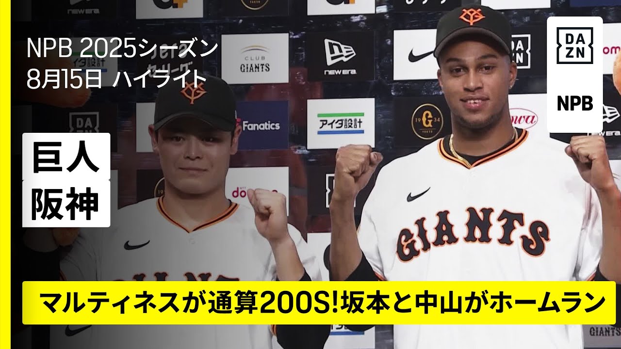 【ライデル・マルティネスが通算200S|読売ジャイアンツ×阪神タイガース|ハイライト】坂本勇人、中山礼都のホームランで巨人が逆転勝利|2025年8月15日 プロ野球