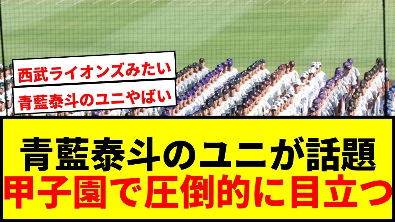 [音楽] 正乱のユニが話題で圧倒的に目立つ第 [音楽] 7 回全国高校野球視点大会が開幕し青乱栃木のドハゆにが注目を集めました。西乱トは 35 年ぶりの子園出場で青アイールを貴重としたユニフォームが本の目を奪っています。開では青が眩しい圧倒的に目立つと [音楽] SNSで 大きな話題となりました。このユニフォームは高校野球では珍しい デザインで戦闘表されています。 を貴重にしたデザインが多い中、ブルに 使用のストライプのこちらのユニフォーム 確かに目立つ。このユニフォームが甲子園 のグラウンドで動する様子を楽しみにし たい。多分に時代と共に変化するかな? アメリカのリーグでも個性的な ユニフォームになっているからね。子供の コの相手のユニフォームが好きだった。 40年近く前はちょこちょこ園に出てた けど最近は全く見なくなった。 あの水色のユニフォームがかったな。 ユニフォームの色については上下色以外 規定がないようですね。 ちょっとどうかなと思い面かっこいいとも思います。公明が男みたいだと 3の手さんだ言ってた。 台湾のプロチームっぽい。 阪神にやりにもあるな。 80 年代の西武黄金時代のビジタユニフォームにも見える。 セーブライオンズ 見えば誰でも思うようなことを記事にするおきさ。 甲子園が様子がいあ [音楽]