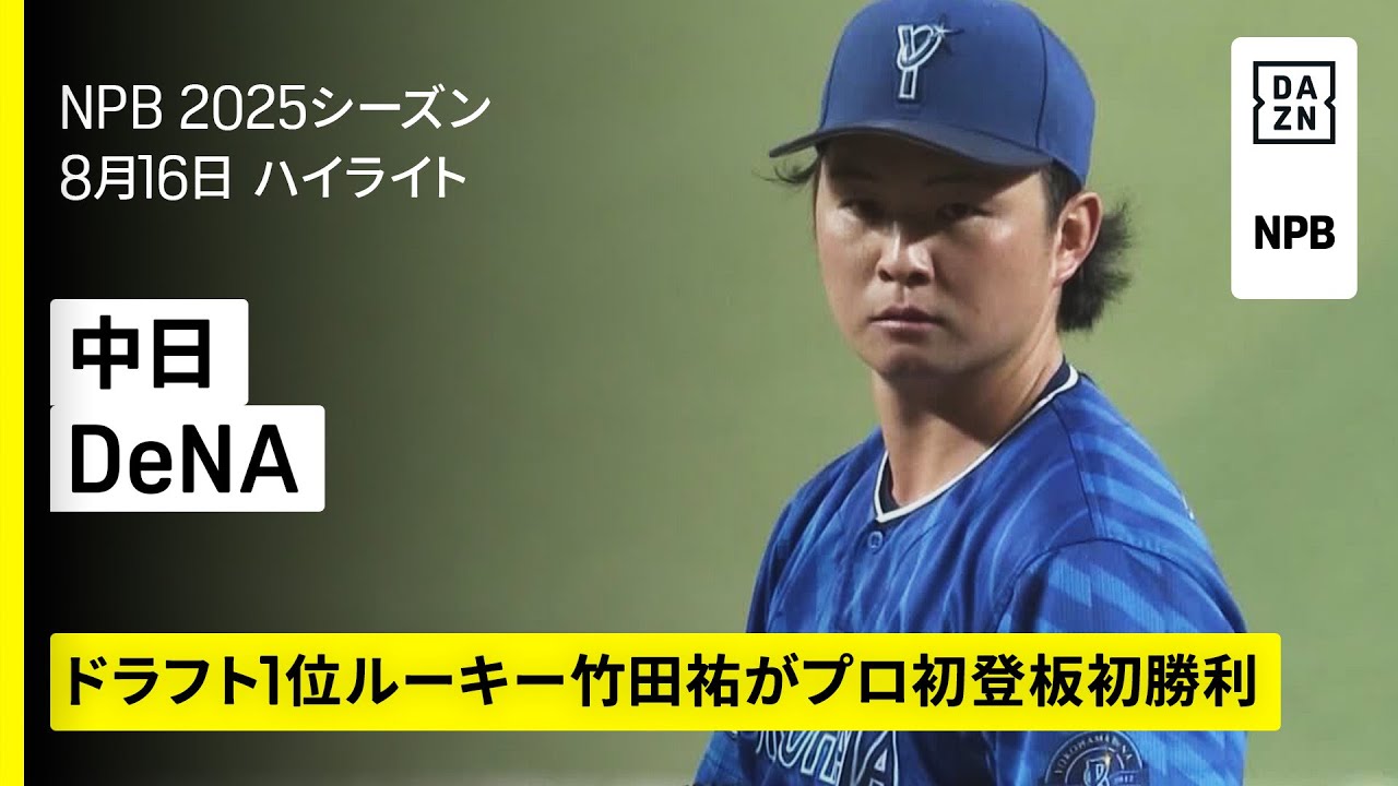 【中日ドラゴンズ×横浜DeNAベイスターズ|竹田祐が7回無失点の好投でプロ初登板初先発初勝利|ハイライト】2025年8月16日 プロ野球