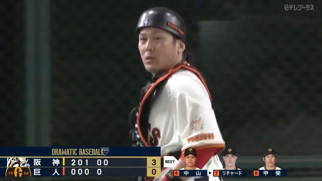 初球から打っていった。セカンドゴロ。さあ、 [拍手] 3 本間に堀下を挟んでタッチしましてランナーが見れに行く。アウトだ。 あ、ここでしかし藤川監督リクエストを要求していますんで。 そうですね。ええ、 こうランダウンレ行ったり来たりさせずに選手が 1 人でアウトにしたんですに放れてここまでナイスプレイだったんですけどちょっと足の方が早く入ってるようには見えますね。 さあ、これは2 塁の審判につけていただいているカメラでの映像ですが、 お、今日は審判の判定は覆えらないと思いますね。はい。そうですね。 そうです。 その映像も 4点差を跳ね返したジャイギアンツ。 さあ、ランナー走っている。アウトだ。 盗塁は失敗です。フォアボールから ランナー出しましたが、カが盗塁を差し ました。 [音楽]