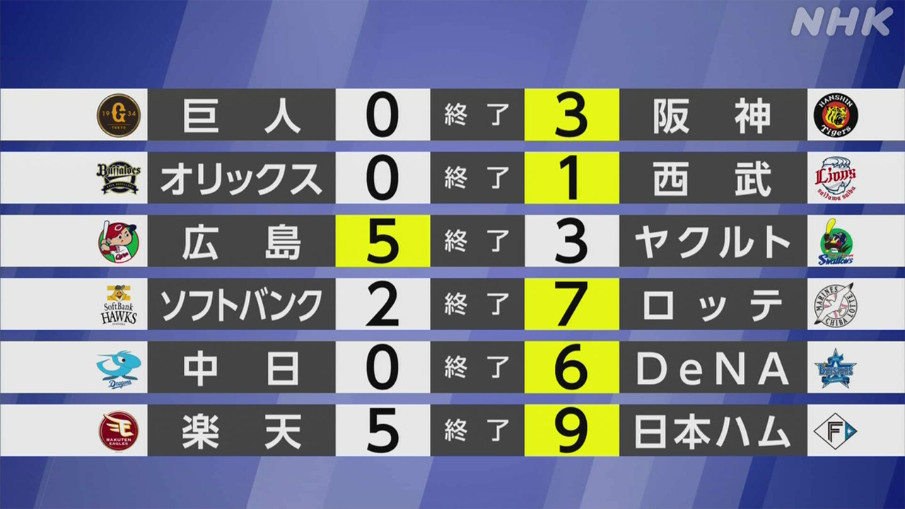 巨人 対 阪神は、阪神が3対0で勝ちました。