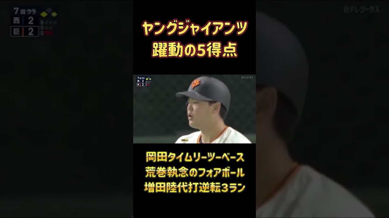 [拍手] ここまでの大きなまチャンス初めて使いましたね まあですからねここまで0で来てますから ええ ままずは1 点ですよねもちろんこで長打でね一気にっていうのは理想ではあるんですけども はいただまずね1 点取ることによってま流れがねまた出来上がってきますからね [拍手] はい そのままずは1 点どのような形で取っていくかワンアウトランナー 2塁1 塁岡田京ニん田ノーヒット初球を打った左中間に転がった [拍手] 2塁ランナーはもうに回っている1塁 ランナーはどうか1塁ランナーも3塁を 回った回ってホームに帰ってきた ジャイアンツ同点 おからやりました 少々獲得即スタ面岡ゆこ振き ました [拍手] でいいと思いますね プロ初打点ということにもなるんでしょうかフォアボールになりましたお焚け火を上げた荒巻で続 [拍手] ルーキー荒巻がおた火を上げてフォアボール さあ昨日同点の犠牲フライを離ちましたここで出てきました今シーズンはチャンスを自分のものにして掴み取っています増田今日昇格の岡田が [拍手] 2点タイムにリーツ 打ったレフトへ上がった見ったスリーランをホームランが飛び出した平マスタリクスイング [音楽] [拍手] 1戦を踏みましたこの回 [拍手] 1挙ンツ5得点 悔しい2軍での時間を経 3ダウンホームランを離しました ジャイアンツが一気に勝ち越し