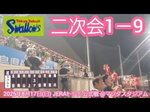 20250817 勝ったぞ!東京ヤクルトスワローズ、試合後の二次会1-9応援歌メドレー 鳴り物・声出し応援1-9@MAZDA Zoom-Zoom スタジアム広島・ビジターパフォーマンス