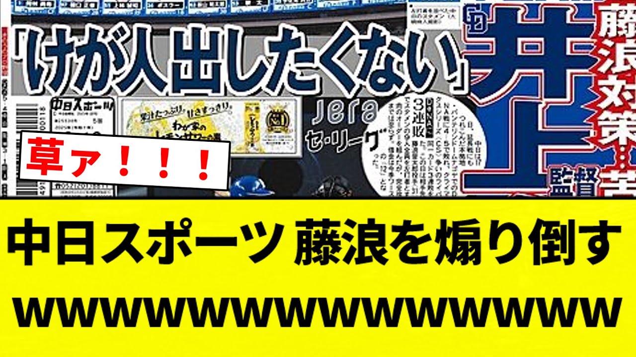【めっちゃ煽ってて草】中日スポーツ、藤浪を煽り倒すwwwwww【プロ野球反応集】【2chスレ】【なんG】