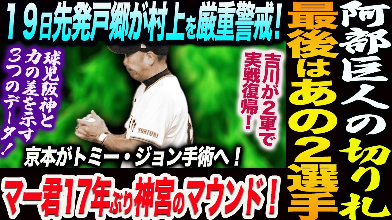 阿部巨人の最終ピース!あの2選手に期待!19日先発戸郷が村上を厳重警戒!マー君17年ぶり神宮のマウンド!球児阪神と力の差を示す3つのデータ!読売巨人軍 ジャイアンツ 巨人 GIANTS 阿部監督