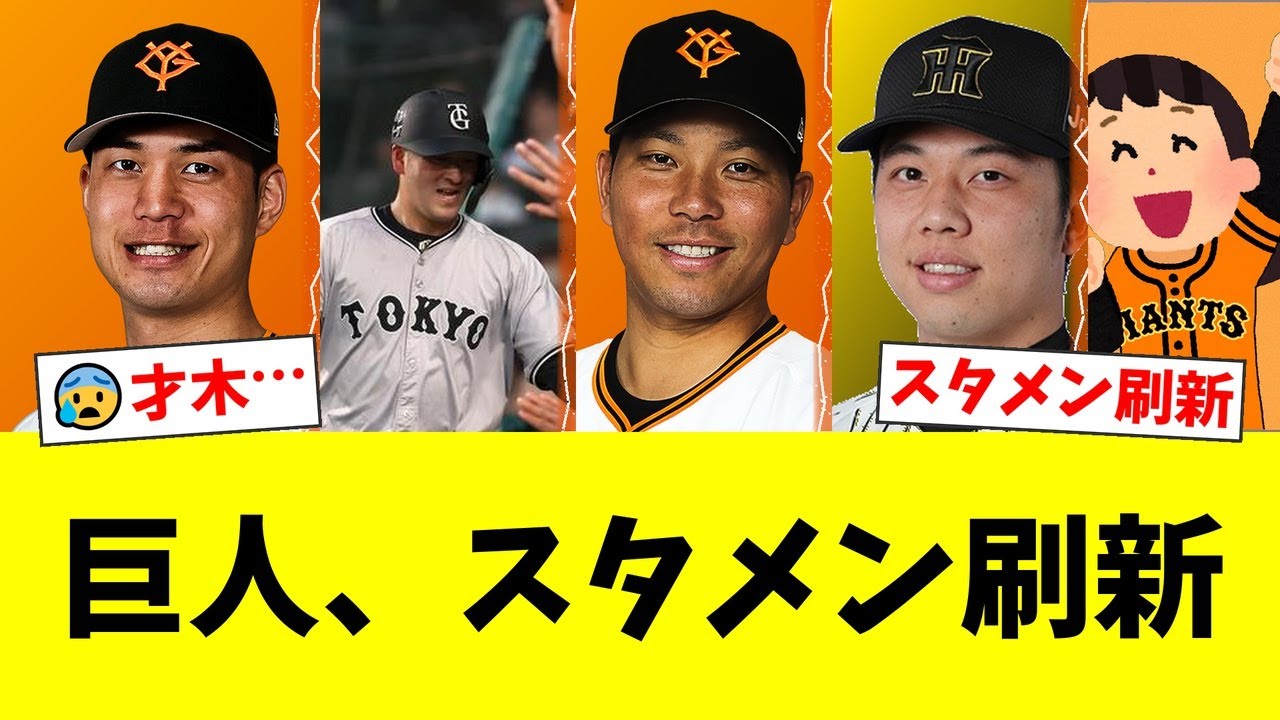 タイトル: 【巨人】2安打と沈黙した前日から野手3人を変更 若林楽人・岸田行倫・大城卓三がスタメン復帰 31イニング連続無得点に抑えられる才木浩人に挑む