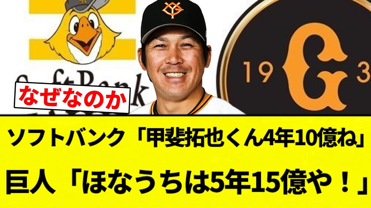 引用 ソフトバンク「甲斐拓也くん4年10億ね」 巨人「ほなうちは5年15億や!」