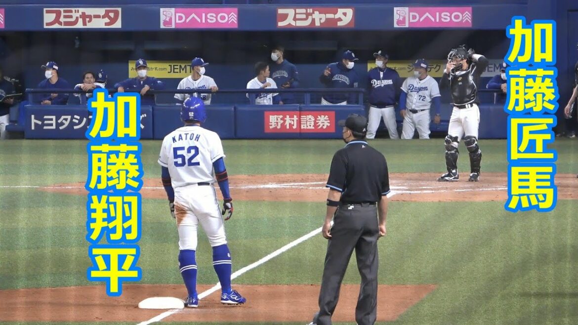 2022年3月20日 オープン戦 中日4-2ロッテ(バンテリンドーム) 4対2と中日2点リードの8回ウラ一死2塁の場面(投手:益田) #加藤翔平 #加藤匠馬 #中日ドラゴンズ #千葉ロッテマリーンズ Chunichi Dragons中日ドラゴンズ加藤匠馬 NPBHUB.COM | The Fanbase of Nippon Baseball & Nippon Professional Baseball