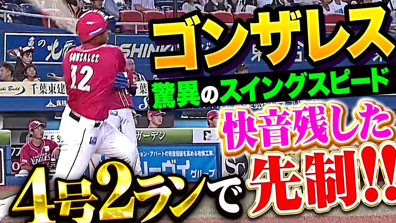 【打った瞬間の豪快弾】ゴンザレス『驚異のスイングスピード…快音響かせた4号2ランで先制!』
