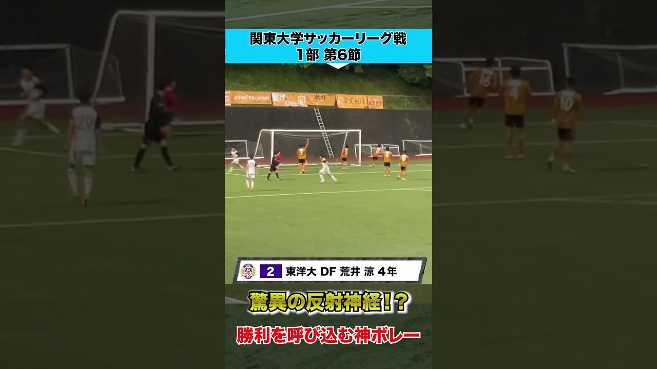 東洋大 DF 荒井涼(4年)が脅威の反射神経で勝利を呼び込む神ボレーが決勝ゴール!