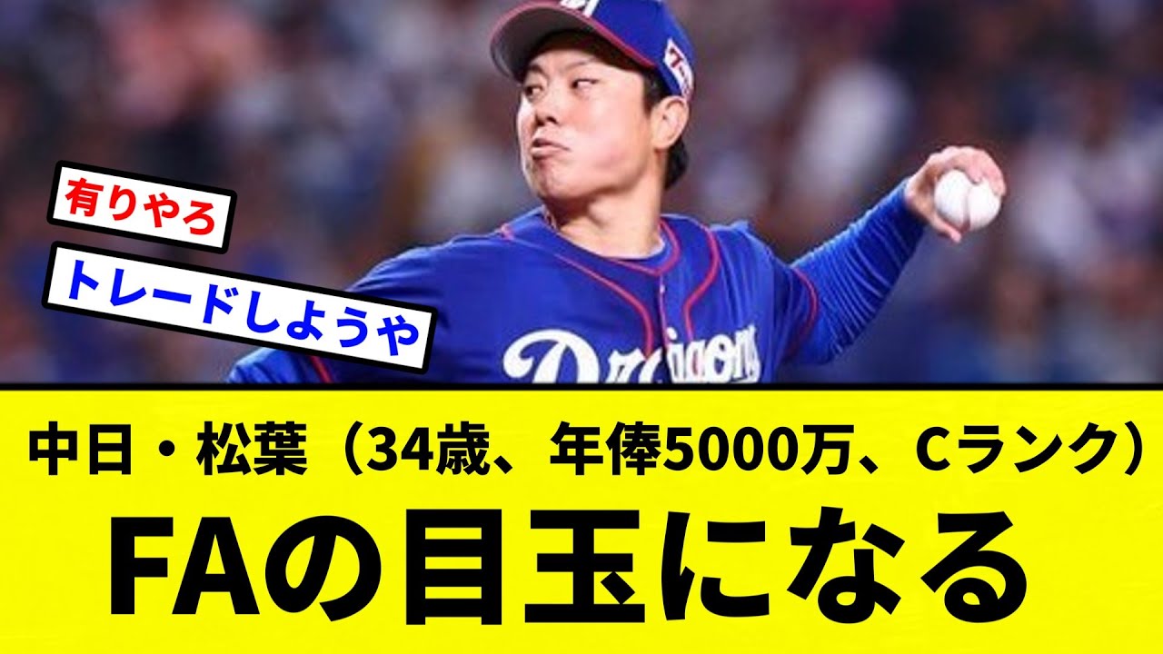 引用 中日・松葉(34歳、年俸5000万、Cランク)、FAの目玉になる